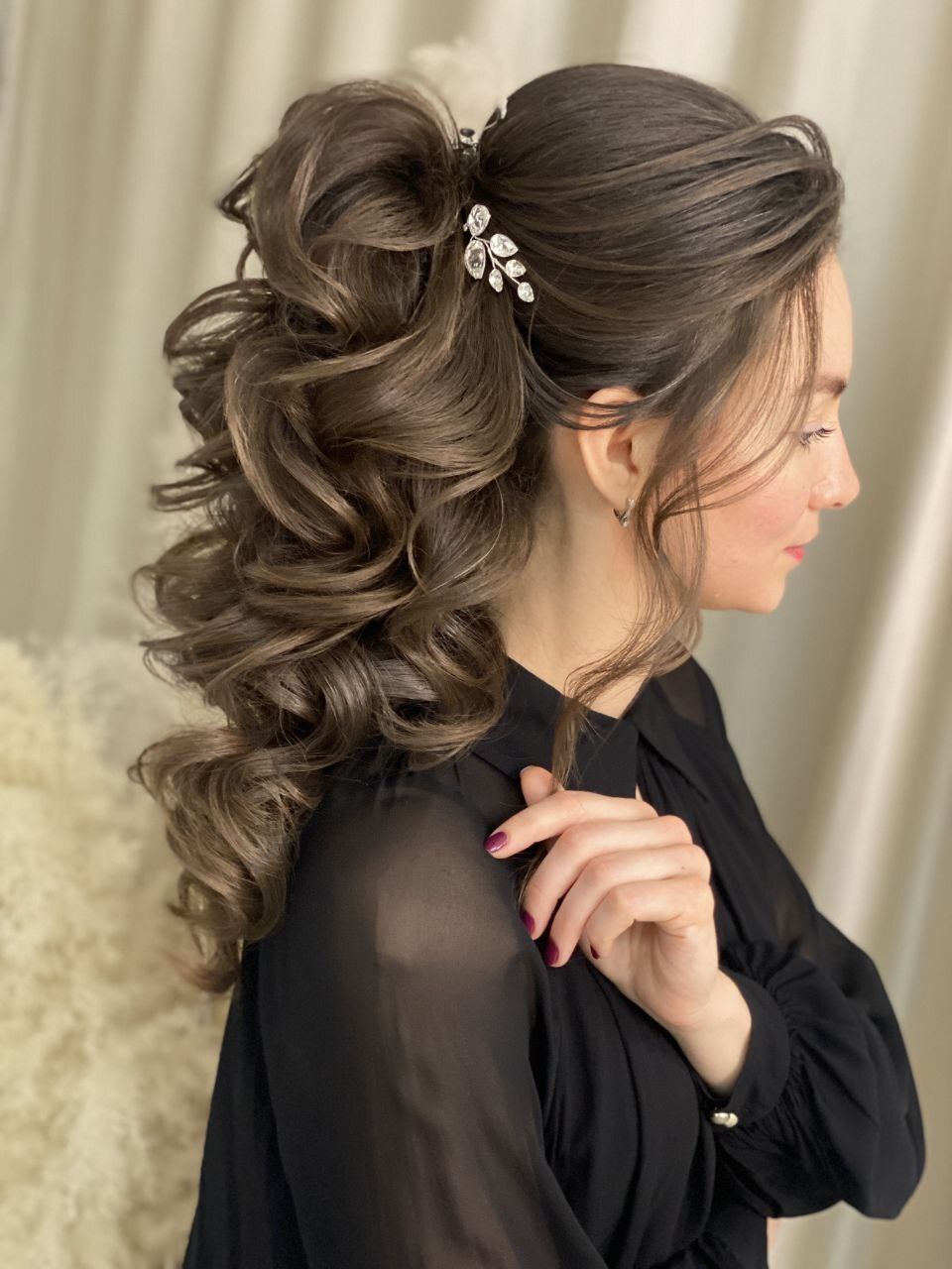 Получим готовый вариант укладки и самый базовый метод подготовки волос для причесок.